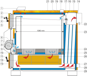| Palivo | drevo do max. vlhkosti 20% o výhrevnosti min. 15 MJ/kg |