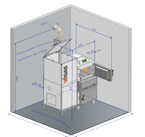 | Náhradné palivo | Drevný odpad, štiepky, piliny, pilinové brikety do max. vlhkosti 20% |