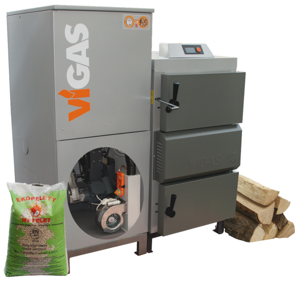 Kombinovaný automatický teplovodný kotol VIGAS 26DPA v sebe spája dva systémy spaľovania paliva v jeden celok. Jedinečná konštrukcia umožňuje v kotle spaľovať kusové drevo aj pelety pričom po dohorení dreva je možné využiť funkciu automatického prechodu na palivo pelety. Ideálny pre vykurovanie malých rodinných domov a menších priemyselných objektov do 350 m2