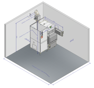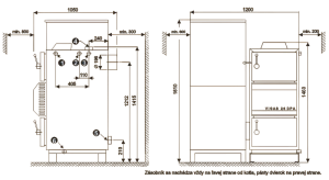 Rozmerový náčrtok a umiestnenie kotla VIGAS 26 DPA