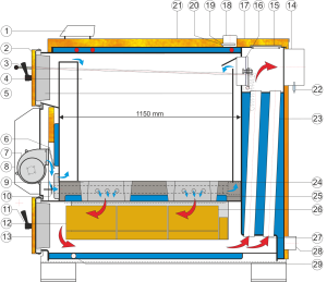 | Náhradné palivo | Drevný odpad, štiepky, piliny, pilinové brikety do max. vlhkosti 20% |